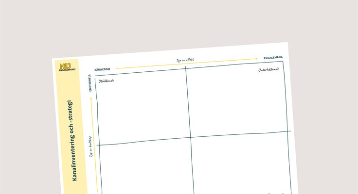 Inventera era kanaler för att kunna sätta en strategi - se till att maxa effekten av era budskap. Här kan du ladda ner en enkel karta för en investering av era kanaler, vi har valt att utgå från två parametrar nämligen effekt & budskap.